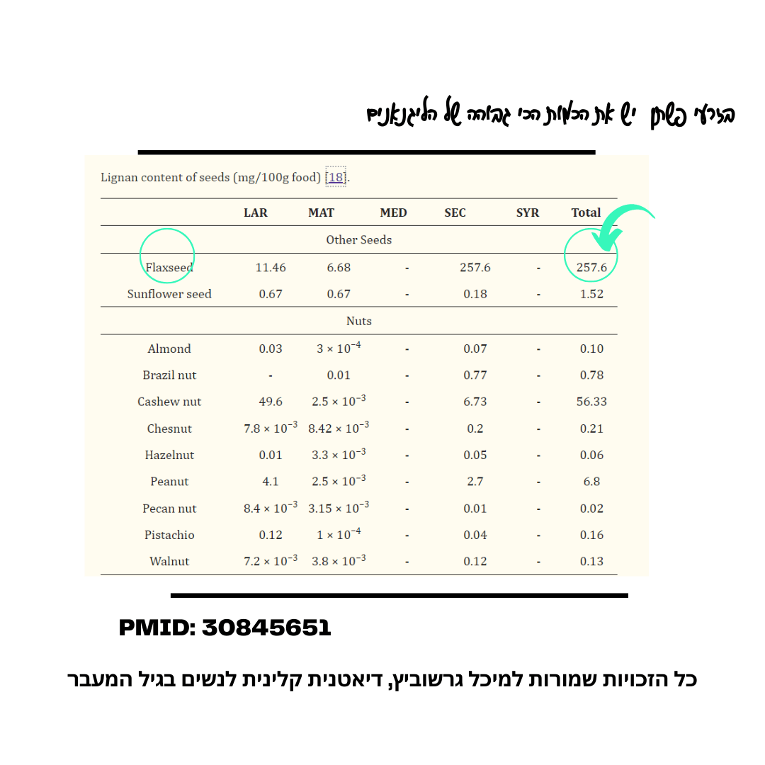 בטבלה כאן יש ההשוואה של רמות הליגנאנים במזונות השונים:
