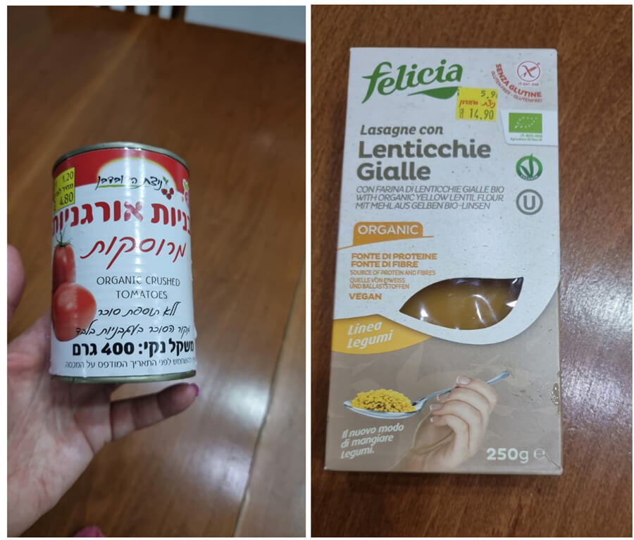 דפי לזניה ע"ב קמח עדשים צהובות (מופיע בתמונה)