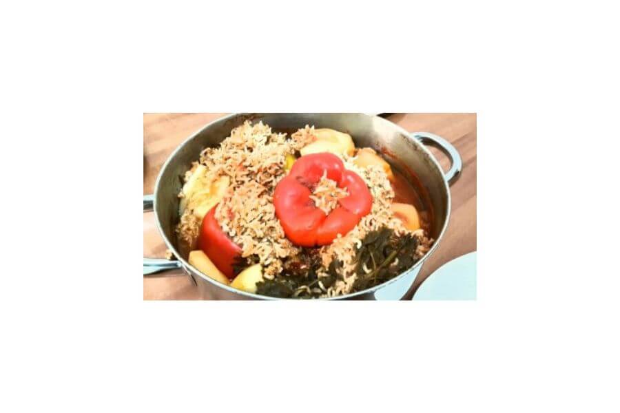 ממלאים כל פלפל בתערובת הבשר והאורז עד הסוף, אך לא דוחסים את התערובת בכדי שישאר מקום לאורז לתפוח.